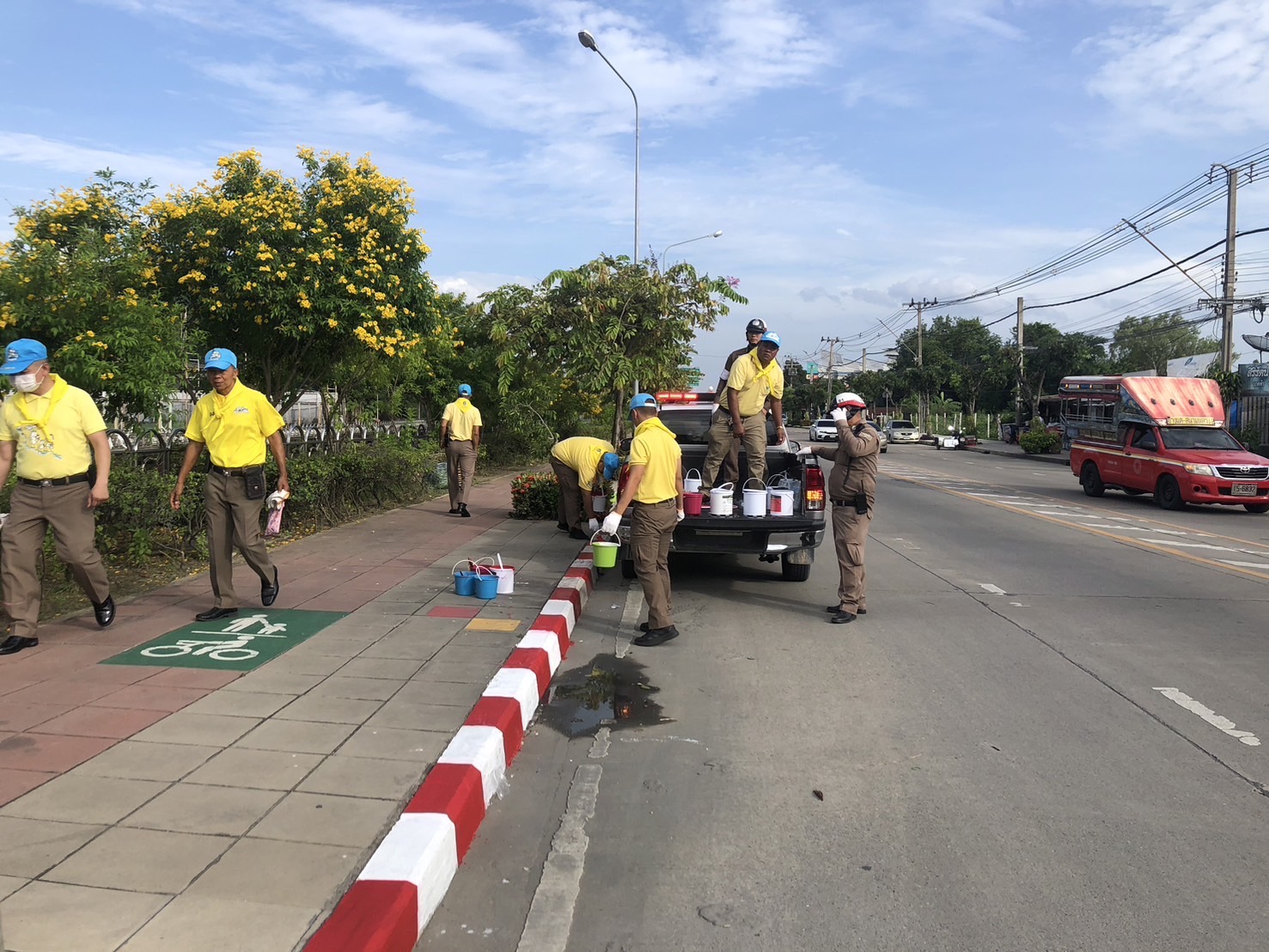 วันพฤหัสบดีที่ 24 กรกฎาคม เวลา 16.00 น.พล.ต.ต.กัมปนาท อรุณคีรีโรจน์ ผบก.น.7 พร้อมด้วย พ.ต.อ.ธงชัย บัวรังษี รองผบก.น.7 พ.ต.อ.สมยศ อุดมรักษาทรัพย์ รองผบก.น. 7 นายปัญญา สวัสดิ์เสรี ผช.ผอ.เขตบางแค คุณชัยณรงค์ สายสมร ประธานอนุกรรมการ กต.ตร.บก.น. 7 คุณเลิศพงษ์ โกฏิเสียรกุล ประธานกต.ตร.สน.ศาลาแดง พ.ต.อ.มนต์ชัย อรุณส่องแสงดี ผกก.สน.ตลิ่งชัน ข้าราชการตำรวจสถานีตำรวจในสังกัดบก.น.7 คณะกรรมการ กต.ตร.และที่ปรึกษา กต.ตร.สน.ศาลาแดง เจ้าหน้าที่สำนักงานเขตบางแค เจ้าหน้าที่จากสำนักการระบายน้ำกรุงเทพมหานคร เจ้าหน้าที่จากสำนักวิศวะการจราจรกรุงเทพมหานคร ประธานชุมชน และประชาชนจิตอาสา จำนวน 120 คน ร่วมกันทำโครงการจิตอาสา " เราทำความ ดี ด้วยหัวใจ "เนื่องในโอกาสวันเฉลิมพระชนมพรรษา พระบาทสมเด็จพระเจ้าอยู่หัว 28 กรกฎาคม 2568 โดยมีกิจกรรมปลูกต้นไม้ประจำรัชกาล จำนวน 74 ต้น กิจกรรมลงเรือเก็บขยะในคลองทวีวัฒนา กิจกรรมทาสีทางเท้า สะพาน ขอบถนน ณ วัดศาลาแดง แขวงบางไผ่ เขตบางแค กรุงเทพ ฯ