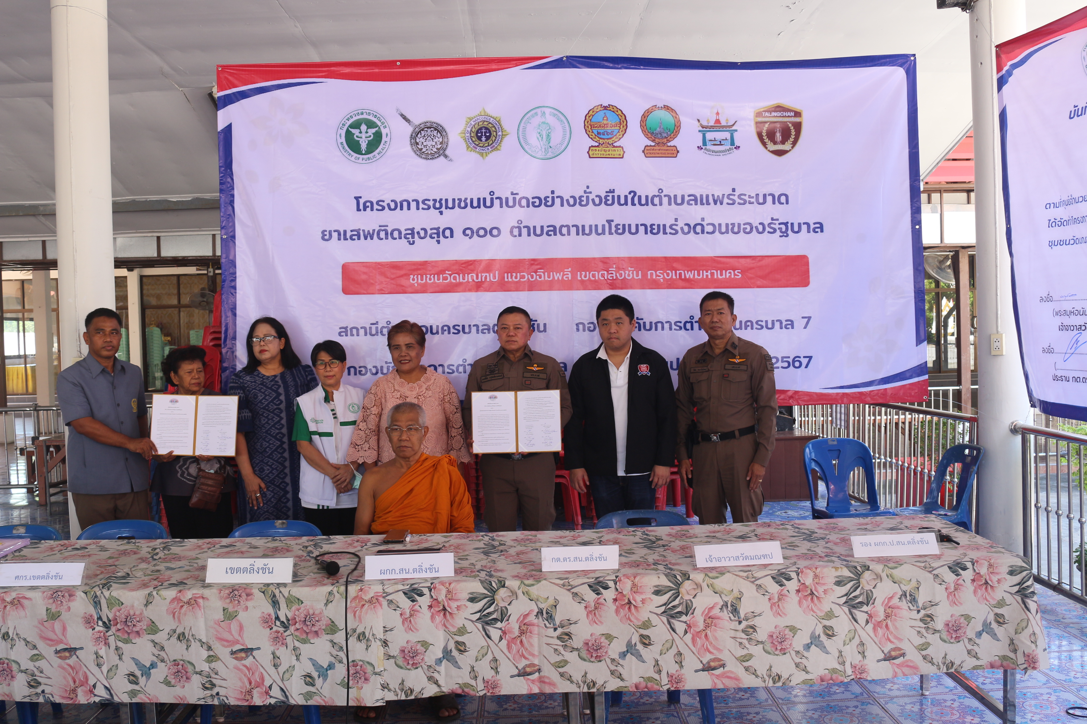 รอง ผกก.ป .สน.ตลิ่งชัน พ.ต.ท.สมเกียรติ อนันตกาล รองผกก.จร.สน.ตลิ่งชัน พ.ต.ท.เสรี สมานคำ สว.จร.สน.ตลิ่งชัน พ.ต.ต.ธนันต์นัต กาศรัมย์ สวป.(ชส.)สน.ตลิ่งชันพร้อมชุด ตชส. สน.ตลิ่งชัน ร่วมกับสำนักงานเขตตลิ่งชัน,ศูนย์บริการสาธารณสุข 49 ,นางสุนันท์ ศิริอัฐ ประธาน / คณะกรรมการชุมชนวัดมณฑป เปิดโครงการชุมชนบำบัดอย่างยั่งยืนในพื้นที่แพร่ระบาดของยาเสพติด ตามนโยบายเร่งด่วนของรัฐบาล ณ ที่ทำการชุมชนวัดมณฑป แขวงฉิมพลี เขตตลิ่งชัน กทม.